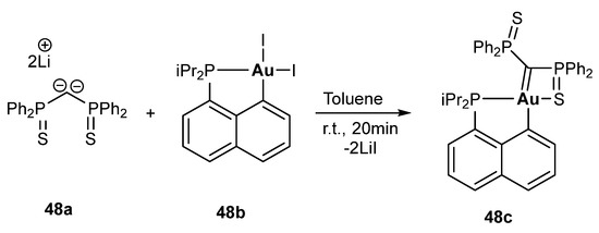 - Cantat, T.; Ricard, L.; Le Floch, P.; Mézailles, N.N.M. Phosphorus-Stabilized Geminal Dianions. Organometallics 2006, 25, 4965–4976. [Google Scholar] [CrossRef]