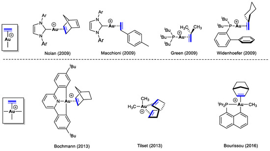 - Savjani, N.; Roşca, D.A.; Schormann, M.; Bochmann, M. Gold(III) Olefin Complexes. Angew. Chem. Int. Ed. 2013, 52, 874–877. [Google Scholar] [CrossRef] [PubMed]
