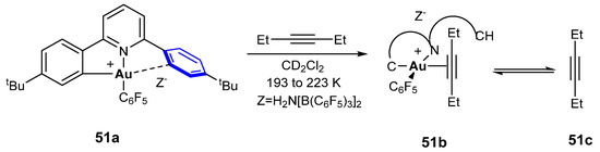 - Rocchigiani, L.; Fernandez-Cestau, J.; Agonigi, G.; Chambrier, I.; Budzelaar, P.H.; Bochmann, M. Gold(III) Alkyne Complexes: Bonding and Reaction Pathways. Angew. Chem. Int. Ed. 2017, 56, 13861–13865. [Google Scholar] [CrossRef]