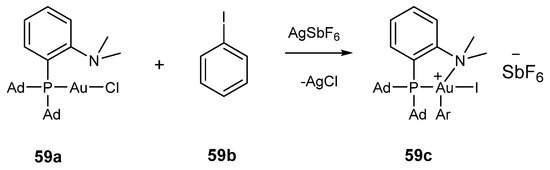 - Wu, C.Y.; Horibe, T.; Jacobsen, C.B.; Toste, F.D. Stable Gold(III) Catalysts by Oxidative Addition of a Carbon–Carbon Bond. Nature 2015, 517, 449–454. [Google Scholar] [CrossRef] [PubMed]