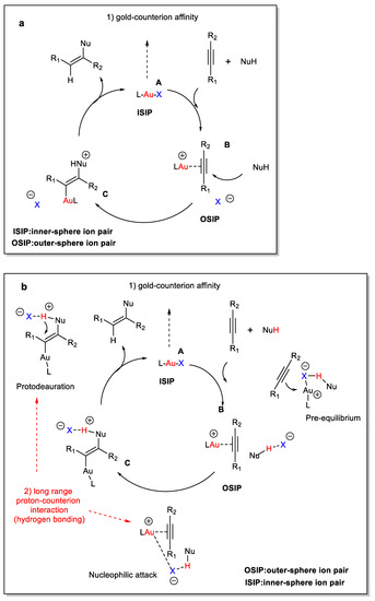 - Jia, M.; Bandini, M. Counterion Effects in Homogeneous Gold Catalysis. ACS Catal. 2015, 5, 1638–1652. [Google Scholar] [CrossRef]