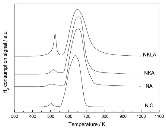 TPR profiles of the three catalysts for NA, NKA and NKLA.