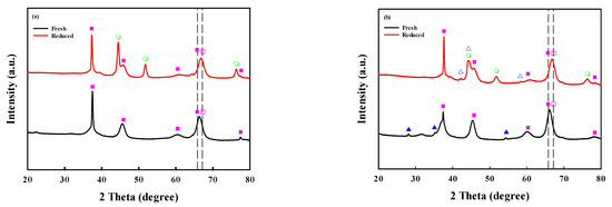 Various oxide supports such as Al2O3, SiO2, TiO2 and CeO2 have been studied to improve catalytic performance and stability [17]. Al2O3 has the advantage of thermal stability and efficient structural characteristics, including strong metal–support interaction [18]. The interaction between active metal and support affects the structure, the crystalline phase, and the dispersion of active sites, facilitating the catalytic performance and stability of catalysts. Kumar et al. prepared the supported Ni catalyst with diverse support for the reforming of the methane reaction [19]. The Al2O3-supported Ni catalyst exhibited well-dispersed small Ni particles, strong Ni–Al interaction, and the best catalytic activities.