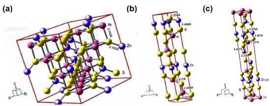 Crystal structure of cubic (a), hexagonal (b), rhombic (c) ZnIn2S4 [].
