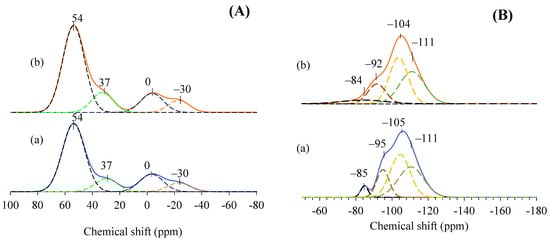 (A) 27Al and (B) 29Si MAS NMR spectra of (a) parent H-ZSM-5 and (b) 0.1DeAl.H-ZSM-5.