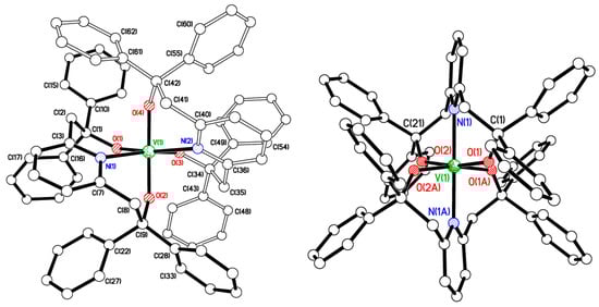 3.3. Preparation of [V({OC(Ph)2CH2}2(cis-NC5H3))2] (2)