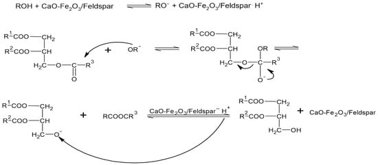 2.3. Proposed Mechanism of CaO/Fe2O3/Feldspar Catalyst for Transesterification