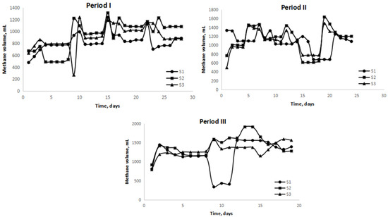 | Rmax, Nm3 kg VS−1 d−1 | 0.64 | 0.75 | 0.82 | 1.51 | 0.85 | 1.00 |