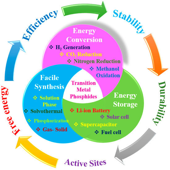 - Shi, Y.; Li, M.; Yu, Y.; Zhang, B. Recent advances in nanostructured transition metal phosphides: Synthesis and energy-related applications. Energy Environ. Sci. 2020, 13, 4564–4582. [Google Scholar] [CrossRef]