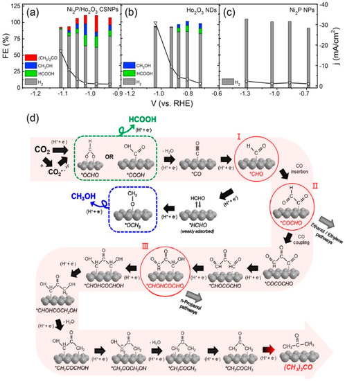 - Banerjee, S.; Kakekhani, A.; Wexler, R.B.; Rappe, A.M. Mechanistic Insights into CO2 Electroreduction on Ni2P: Understanding Its Selectivity toward Multicarbon Products. ACS Catal. 2021, 11, 11706–11715. [Google Scholar] [CrossRef]