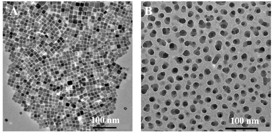 Transmission Electron Microscopy (TEM) characterization was used. TEM images were acquired on a JEOL JEM-1400 Plus electron microscope equipped with a thermionic gun at an accelerating voltage of 120 kV. The samples of CsPbBr3 NCs and CsPbBr3/TiO2 NCs were prepared by depositing a diluted nanocrystal suspension in toluene onto carbon-coated copper grids.