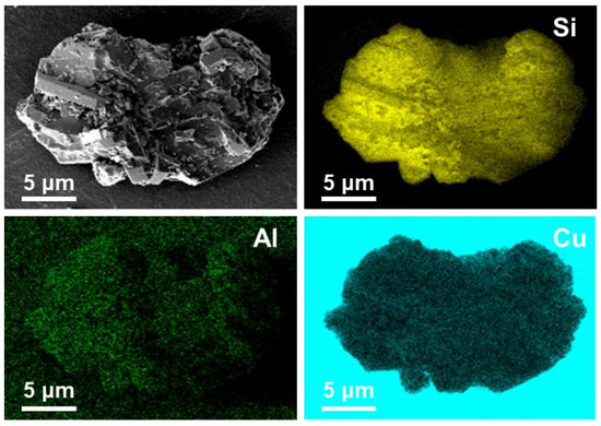 SEM EDS mapping images of Si, Al, and Cu elements in the Cu-ZSM-5T@SiO2 capsule catalyst.