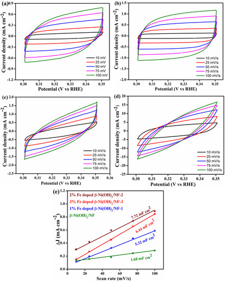 - Mahala, C.; Devi Sharma, M.; Basu, M. Fe-Doped Nickel Hydroxide/Nickel Oxyhydroxide Function as an Efficient Catalyst for the Oxygen Evolution Reaction. ChemElectroChem 2019, 6, 3488–3498. [Google Scholar] [CrossRef]