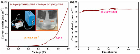 - Ren, J.-T.; Yuan, G.-G.; Weng, C.-C.; Chen, L.; Yuan, Z.-Y. Uniquely integrated Fe-doped Ni(OH)2 nanosheets for highly efficient oxygen and hydrogen evolution reactions. Nanoscale 2018, 10, 10620–10628. [Google Scholar] [CrossRef] [PubMed]