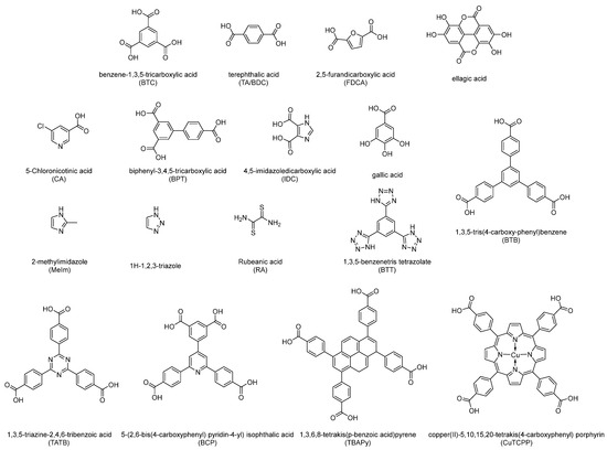 Structures and abbreviations of organic linkers for constructing MOFs discussed in this review.