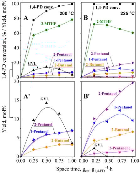 2.5.2. Hydroconversion of 1,4-PD