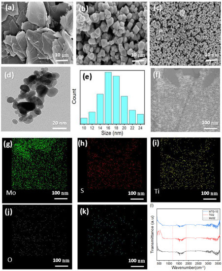 - Teng, W.; Wang, Y.M.; Lin, Q.; Zhu, H.; Tang, Y.B.; Li, X.Y. Synthesis of MoS2/TiO2 nanophotocatalyst and its enhanced visible light driven photocatalytic performance. J. Nanosci. Nanotechnol. 2019, 19, 3519. [Google Scholar] [CrossRef]