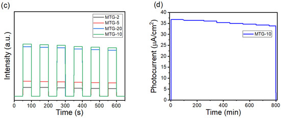 - Luo, J.; Li, D.; Yang, Y.; Liu, H.; Chen, J.; Wang, H. Preparation of Au/reduced graphene oxide/hydrogenated TiO2 nanotube arrays ternary composites for visible-light-driven photoelectrochemical water splitting. J. Alloys Compd. 2016, 661, 380–388. [Google Scholar] [CrossRef]