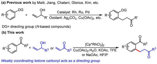 Li, W.-D.; Zhang, J.-S.; Zhang, L.-Y.; Liu, Z.-W.; Fan, J.; Shi, X.-Y. Rhodium-Catalyzed Alkylation of Aromatic Ketones with Allylic Alcohols and α,β-Unsaturated Ketones. Catalysts 2023, 13, 1157. https://doi.org/10.3390/catal13081157
