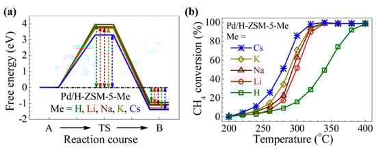 - Luo, L.; Wang, S.; Fan, C.; Yang, L.; Wu, Z.W.; Qin, Z.F.; Zhu, H.Q.; Fan, W.B.; Wang, J.G. Promoting effect of alkali metal cations on the catalytic performance of Pd/H-ZSM-5 in the combustion of lean methane. Appl. Catal. A 2020, 602, 117678. [Google Scholar] [CrossRef]
