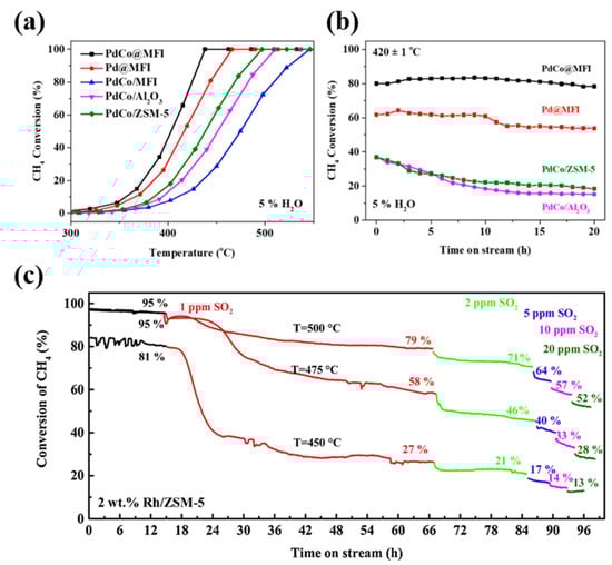 - Wang, W.Y.; Zhou, W.; Li, W.; Xiong, X.W.; Wang, Y.H.; Cheng, K.J.; Kang, J.; Zhang, Q.H.; Wang, Y. In-situ confinement of ultrasmall palladium nanoparticles in silicalite-1 for methane combustion with excellent activity and hydrothermal stability. Appl. Catal. B 2020, 276, 119142. [Google Scholar] [CrossRef]