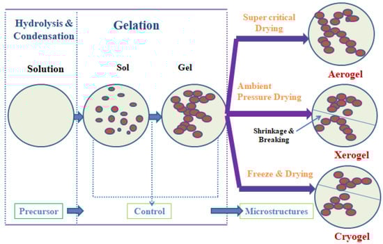 - Ratke, L.; Gurikov, P. The Chemistry and Physics of Aerogels: Synthesis, Processing, and Properties; Cambridge University Press: Cambridge, UK, 2021. [Google Scholar]
