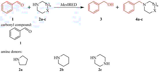 4.4. The Reductive Amination of Benzaldehyde with N-Cyclic Secondary Amines by MesIRED