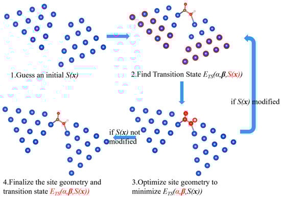 With an understanding of the transition state satisfying Equation (4) and a clear definition of the site function S(x), the optimal site for a given elementary reaction can be determined using the following algorithm: