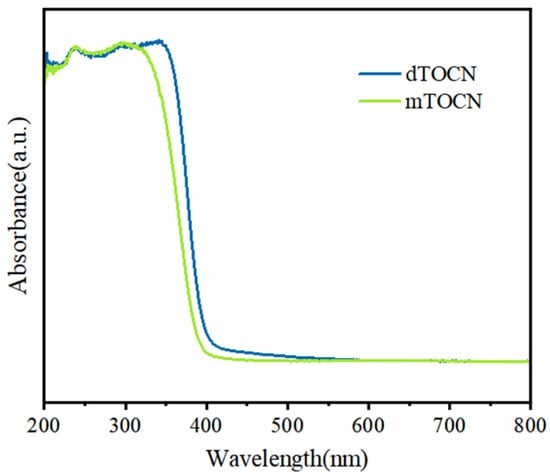 UV diffuse reflectance test spectra of dTOCN and mTOCN.