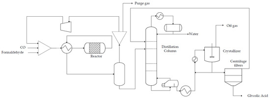 Figure 10. Process flowsheet of formaldehyde carbonylation to glycolic acid. Adapted from [32].