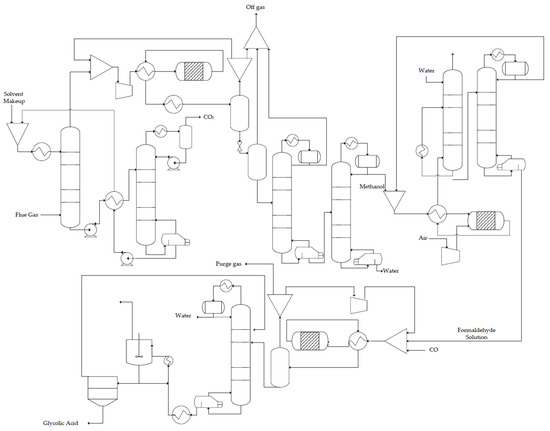 Figure 11. Process flowsheet of CO2 to glycolic acid.