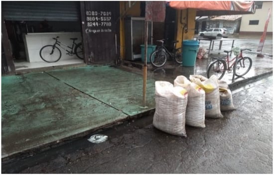 Açaí seeds (Euterpe oleracea Mart.) that were discarded on the sidewalks and streets by a local açaí store in the Jurunas District of Belém, Pará, Brazil, were collected and stored in plastic bags. Figure 14 visually displays the açaí seeds (Euterpe oleracea Mart.) that were found scattered on the sidewalks and streets near the açaí store in the Jurunas District of Belém, Pará, Brazil.