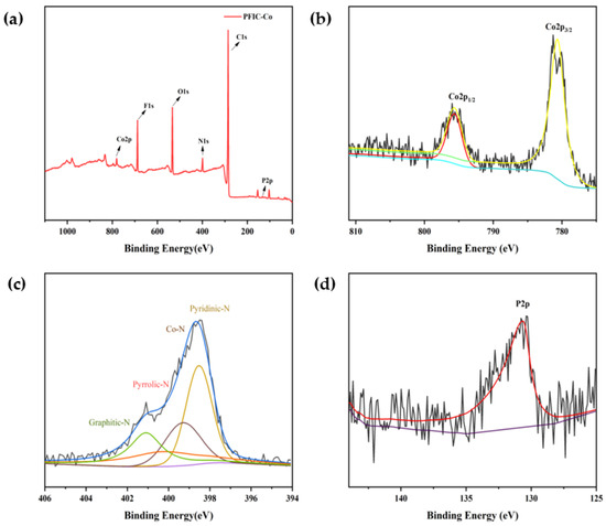 XPS survey spectrum of PFIC-Co (a); XPS spectra of Co 2p (b), N 1s (c), and P 2p (d).