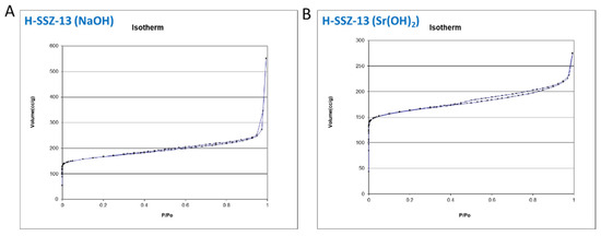 Nitrogen BET adsorption isotherms for H-SSZ-13 (Na) and H-SSZ-13 (Sr).