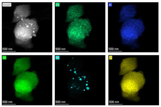 We also performed EDS mapping on selected crystals of aged Pd/Co-SSZ-13 (Figure 7, Figure 11 and Figure 12).