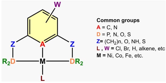 - Peris, E.; Crabtree, R.H. Key Factors in Pincer Ligand Design. Chem. Soc. Rev. 2018, 47, 1959–1968. [Google Scholar] [CrossRef] [PubMed]