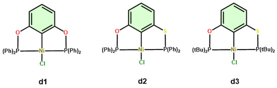 - Salah, A.B.; Zargarian, D. The Impact of P-Substituents on the Structures, Spectroscopic Properties, and Reactivities of POCOP-Type Pincer Complexes of Nickel(II). Dalton Trans. 2011, 40, 8977–8985. [Google Scholar] [CrossRef] [PubMed]