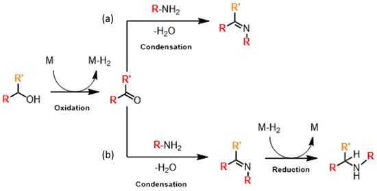 - Reed-Berendt, B.G.; Polidano, K.; Morrill, L.C. Recent Advances in Homogeneous Borrowing Hydrogen Catalysis Using Earth-Abundant First Row Transition Metals. Org. Biomol. Chem. 2019, 17, 1595–1607. [Google Scholar] [CrossRef]