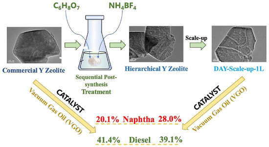 - Wei, L.-J.; Peng, P.; Qiao, K.; Cheng, G.-N.; Etim, U.J.; Yan, Z.-F. Hierarchical Y zeolite with accessible intracrystalline mesopores and enhanced hydrocracking performances via sequential multi-carboxyl acid and fluoroborate post-treatments. Fuel 2023, 354, 129289. [Google Scholar] [CrossRef]