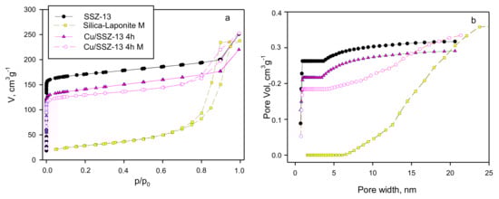 The comparison of micropores and total pore volume of Cu-exchanged and parent SSZ-13 showed that reduction is mostly assignable to the reduction of micropore volume, where Cu is supposedly located, whereas mesopore volume is much less affected.