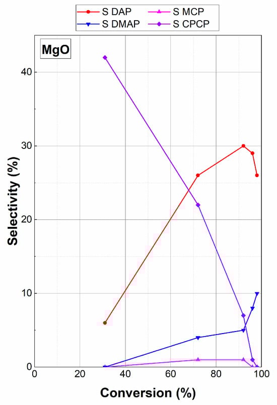 2.2. Study of the Selective Pathway (Route a) Using MgO and MgCO3 (HC) Catalysts