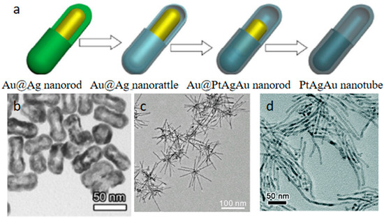 - Sun, H.Y.; Guo, X.; Ye, W.; Kou, S.F.; Yang, J. Charge Transfer Accelerates Galvanic Replacement for PtAgAu Nanotubes with Enhanced Catalytic Activity. Nano Res. 2016, 9, 1173–1181. [Google Scholar] [CrossRef]