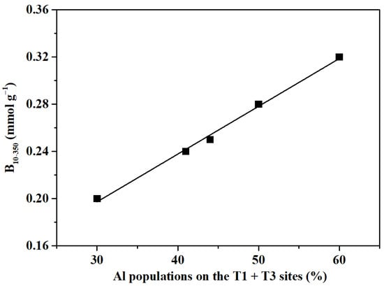 The influence of the Al populations on the T1 + T3 sites on the B10-350 of various FER-X zeolites.