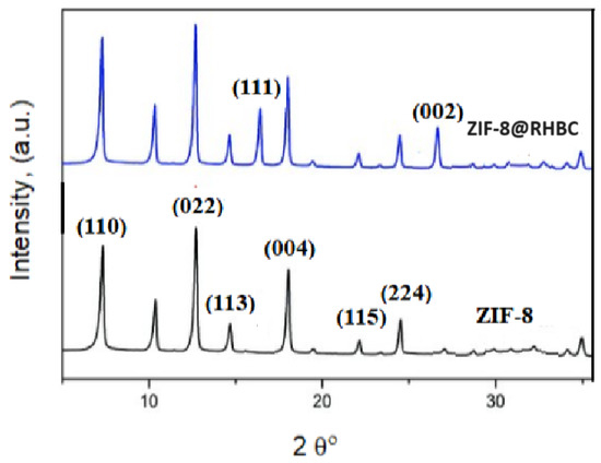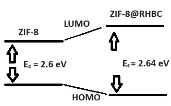 3.4. Synthesis of Rice Husk-Activated Biochar (RHBC) and ZIF-8@RHBC