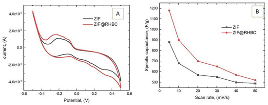 3.5. ZIF-8@RHBC-Modified GCE Electrodes and Electrochemical Characterization