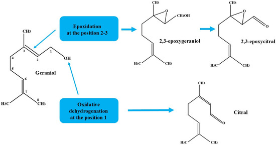 - Weng, D.C.J.; Latip, J.B.; Hasbullah, S.A.B.; Sastrohamidjojo, H. Separation of Geraniol from Citronellol by Selective Oxidation of Geraniol to Geranial. Sains Malays. 2015, 44, 1183–1188. [Google Scholar] [CrossRef]
