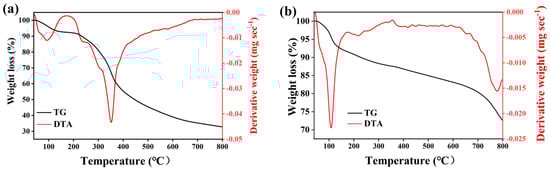 TG-DTA thermogram of the (a) KXC and (b) 25KXC-600-4 catalyst.