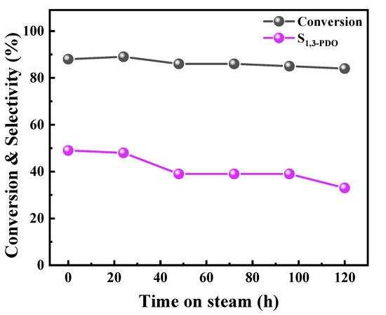 - Qin, L.Z.; Song, M.J.; Chen, C.L. Aqueous-Phase Deoxygenation of Glycerol to 1,3-Propanediol over Pt/WO3/ZrO2 Catalysts in a Fixed-Bed Reactor. Green Chem. 2010, 12, 1466. [Google Scholar] [CrossRef]