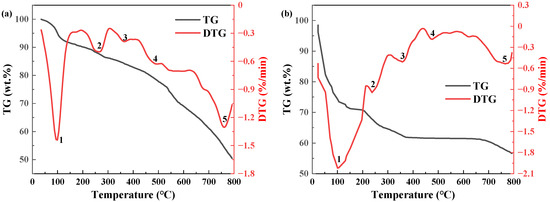 Figure 1 shows the TG/DTG curves of BC1 and BC3 with a heating rate of 10 °C/min and a final temperature of 800 °C. With the increase of temperature, the activated materials underwent significant weight loss, and the DTG curve exhibits five distinct weight loss peaks, which occur approximately at 100 °C, 262 °C, 367 °C, 487 °C, and 762 °C, respectively.