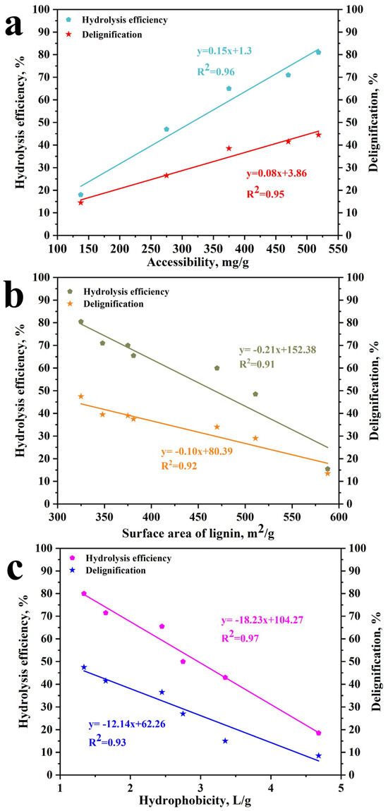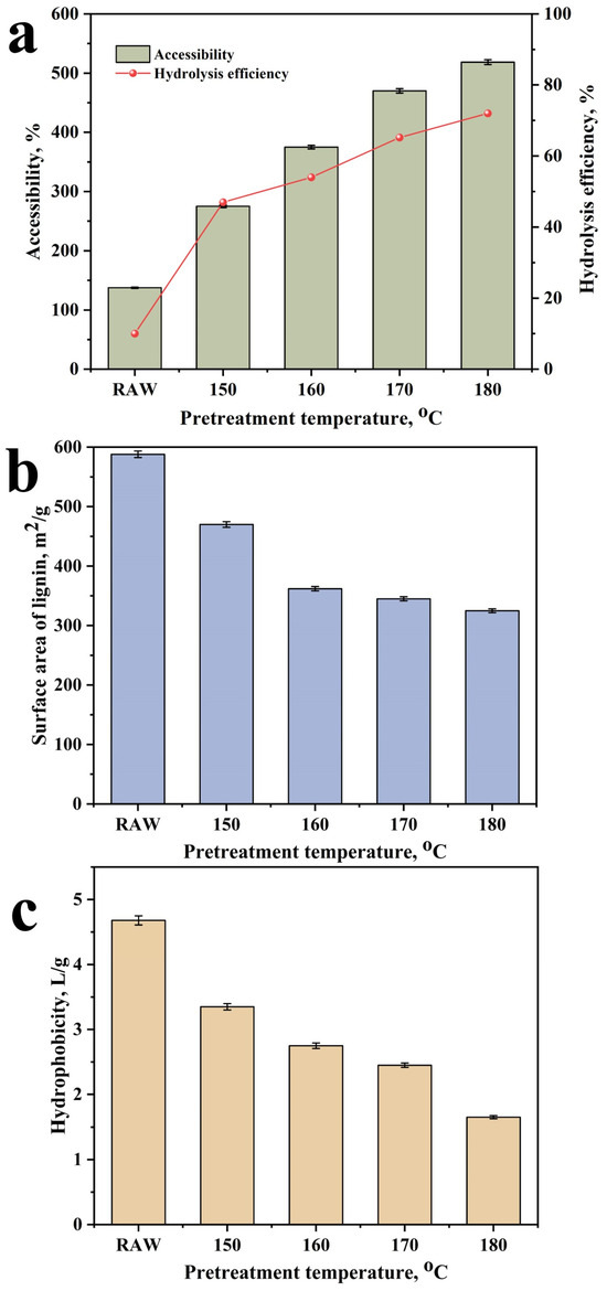 2.4. Investigation of Accessibility, Lignin Surface Area, and Hydrophobicity Change After Pretreatment